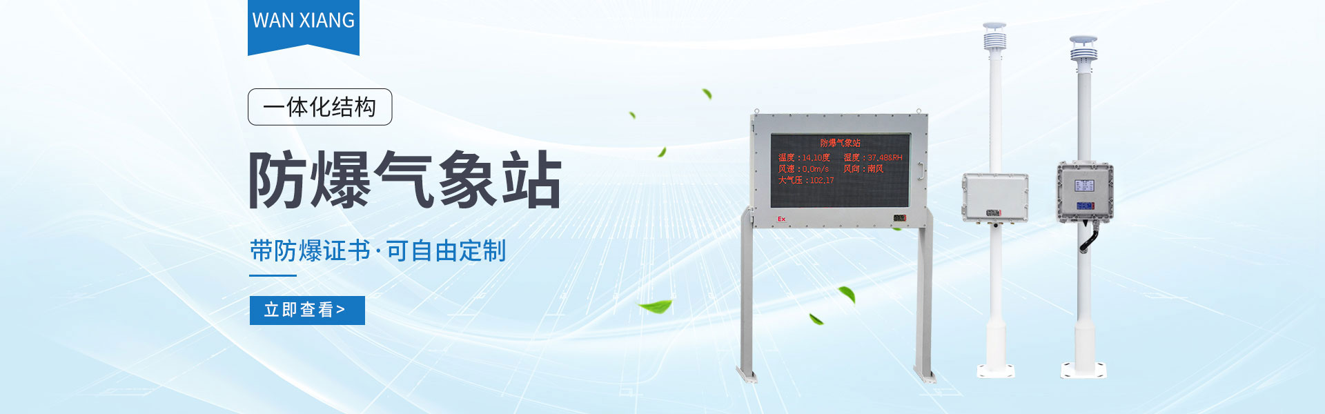 山東萬象環(huán)境科技有限公司官網(wǎng)主要產(chǎn)品有防爆氣象站,校園氣象站,農(nóng)業(yè)氣象站,負(fù)氧離子監(jiān)測站,超聲波氣象站,歡迎咨詢13276362033!